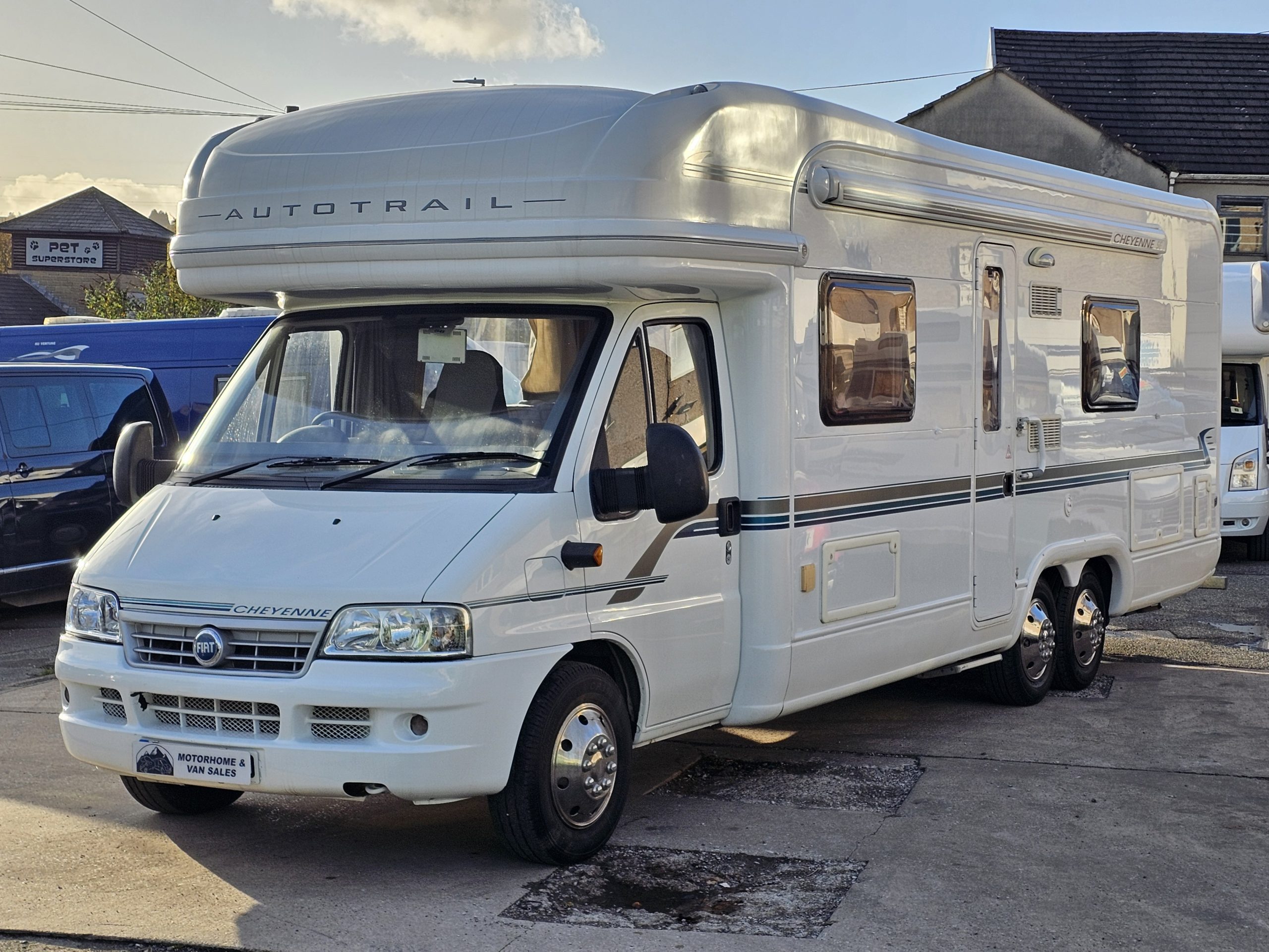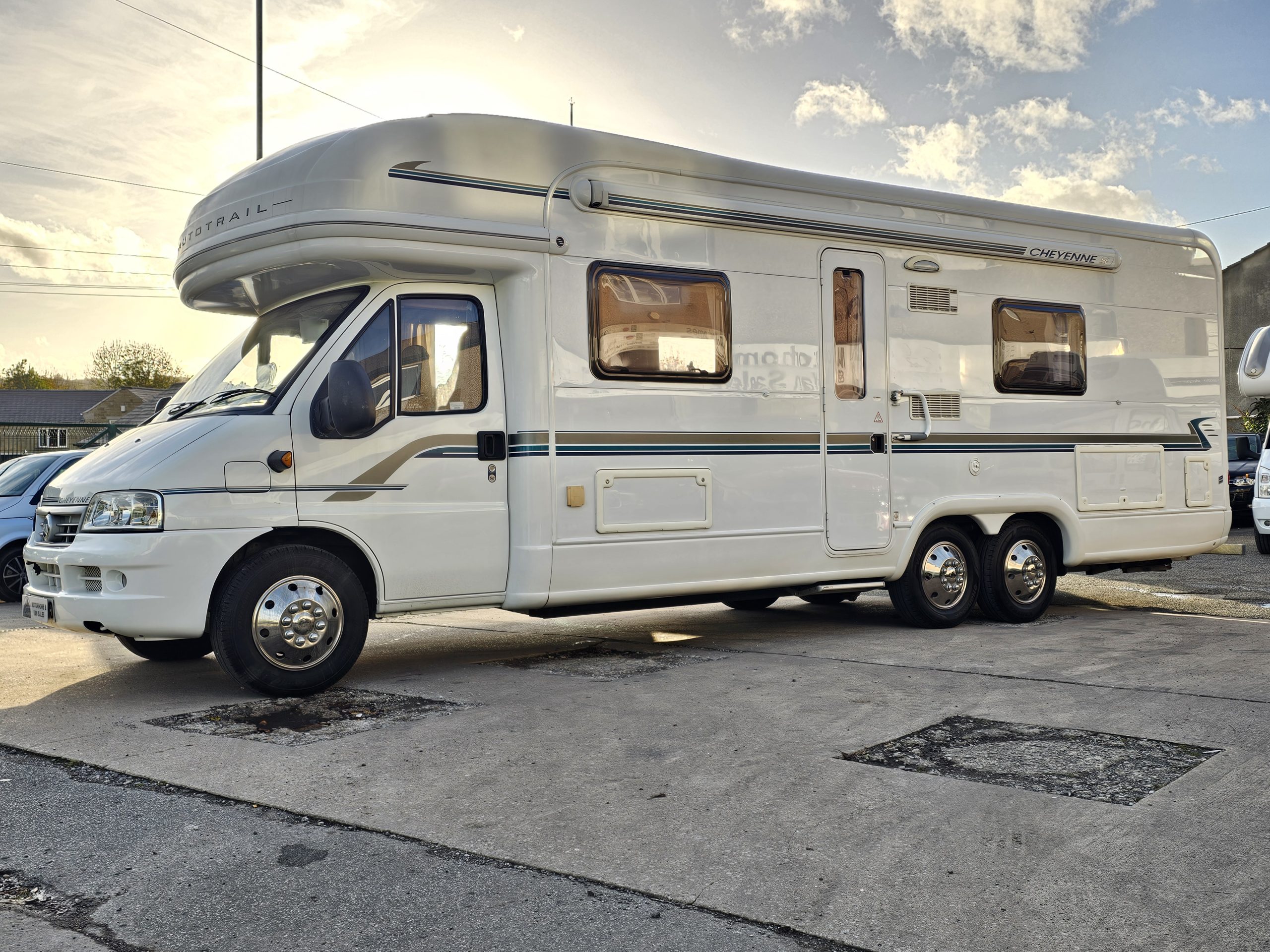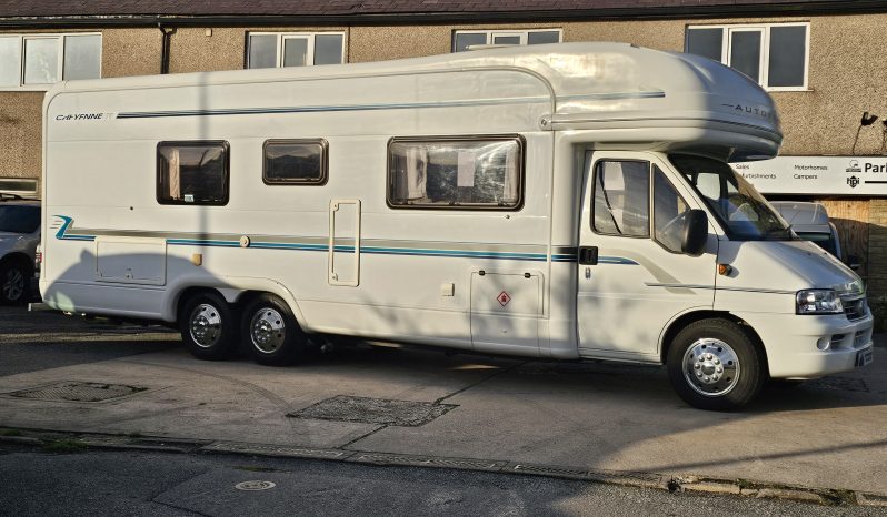 We now have in stock this stunning Autotrail Cheyenne 840 SE Luxury Tag Axel Coachbuilt 4 Berth Motorhome. This is based upon an AL-KO Chassis for added stability and it is powered by a strong 2.8 Ducato/Iveco Engine coupled with a manual gearbox.