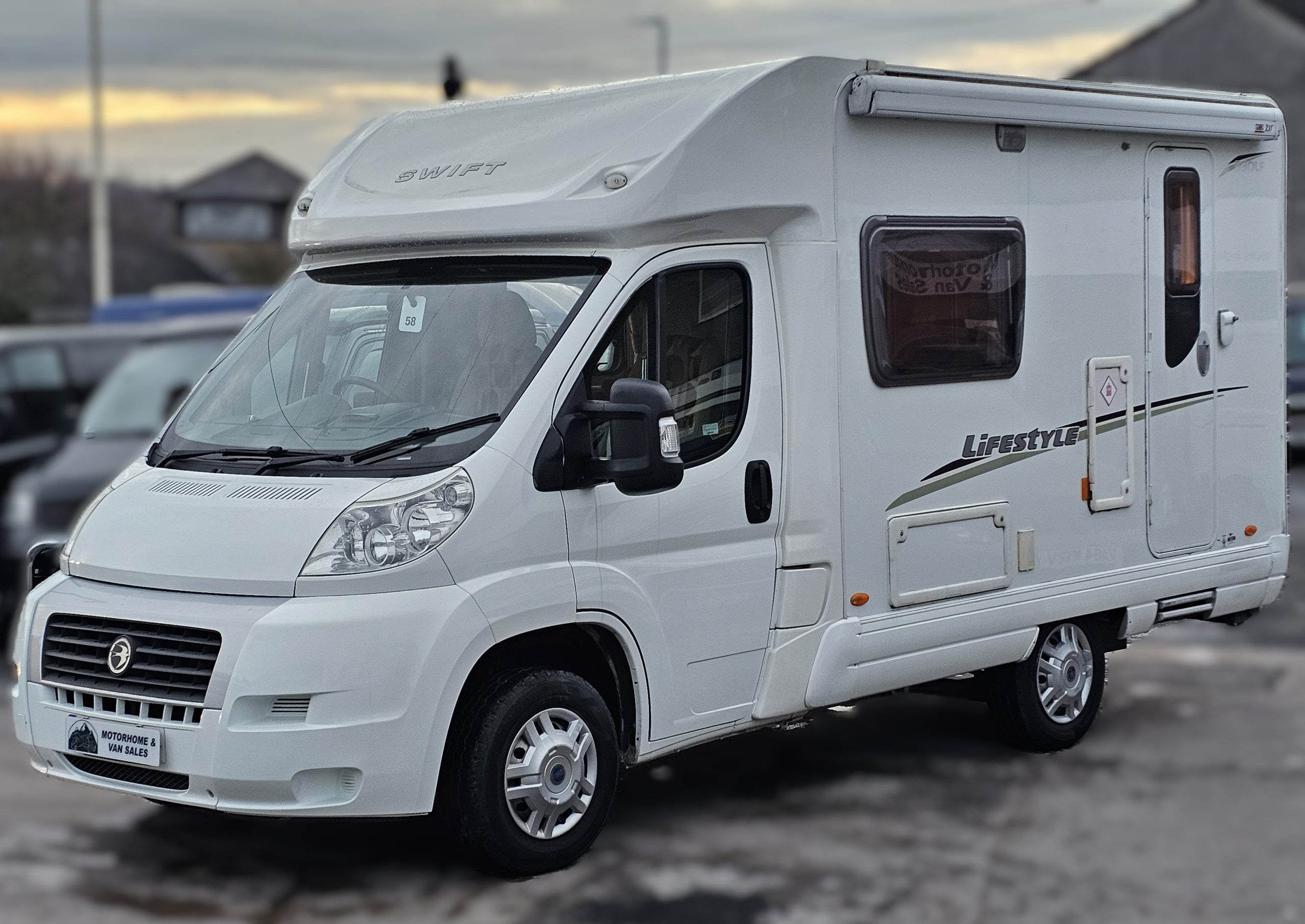 We now have available this lovely little 2 berth Low Profile Coachbuilt Motorhome: the Swift Lifestyle 530LP. It is upon the Fiat Ducato with a 2.2 Litre Turbo Diesel Chain Driven Engine with a manual gearbox.